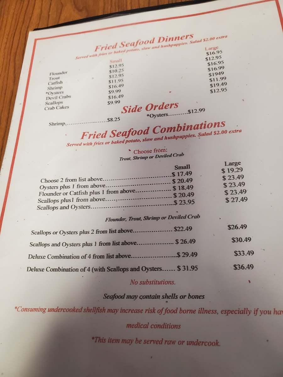 “ Wanting dinner. Not sure where. Googled restaurants in Vanceboro. Discovered Vera's Diner. Perused the menu and hit the road. You'll miss it, if you don't take your time to look for it. Nondescript building...belies the delicious bounty awaiting your taste buds. I ordered the SMALL platter of: Oysters, scallops, and shrimp... fried...I usually get my seafood pan seared or steamed. The coating was more of a dusting of light cornmeal. Everything was cooked perfectly. The oysters exploded with estuary sweet brine flavor; the scallops were nearly the size of a 50¢ piece...sweet and tender; and the shrimp, larger than Calabash, but smaller than cocktail, sweet and delicious; AND LOCAL! Had a salad & Cole slaw as sides. So much of my sea delicacies were left over, I had seconds the next day. Vera's serves Breakfast, Lunch, and Dinner. Open Monday-Saturday. Highway 43, in Vanceboro, NC. I need to check out their Breakfast. ”